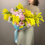 Композиция из тюльпанов и мимозы